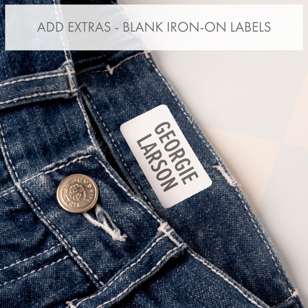 Blank Iron-On Labels Wanting to stamp onto black or darker coloured clothing? No problem! Simply apply the Blank Iron-On Label onto the garment and then apply your personalized Name Stamp. They're water resistant and ideal for darker pieces of clothing or thinner fabrics. Each sheet comes with 16 Iron-On Labels that measure 40 mm x 18 mm" each.