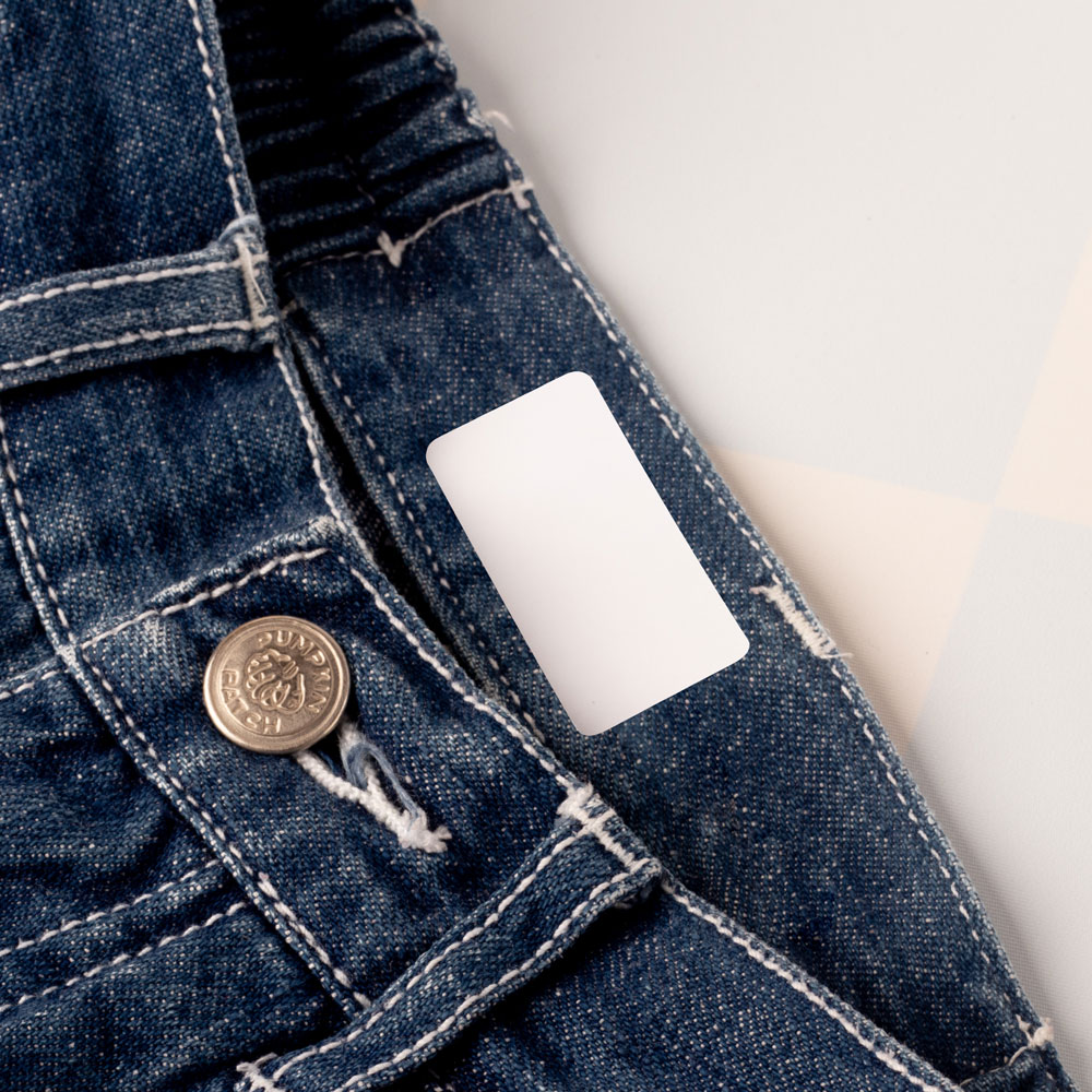 2. Peel off the label & place onto fully dry garment, text side up. Please note: Labels applied to damp garments will not adhere properly.