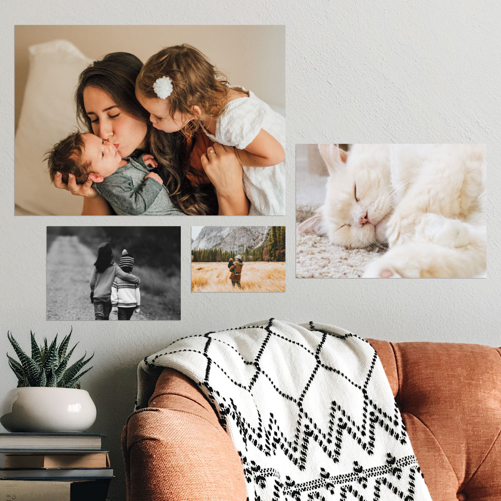 Mix in artwork, quotes, numbers, letters, patterns and more! Our Art Library has a collection of pre-made designs created to help complement your photos and your overall photo wall gallery.